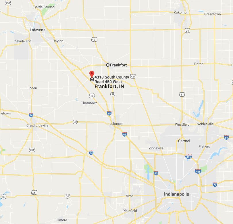 Located 5 miles south west of Frankfort IN. 1.3 miles south of Manson IN. 18 miles north west of Lebanon IN. 50 minutes north west of Carmel IN.