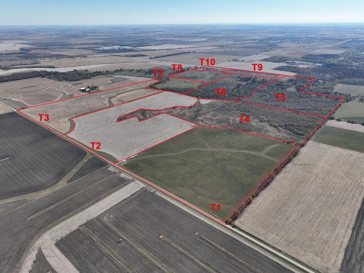 T3: +/- 65.25 acres in total, +/- 57.55 tillable acres, 99 PI.