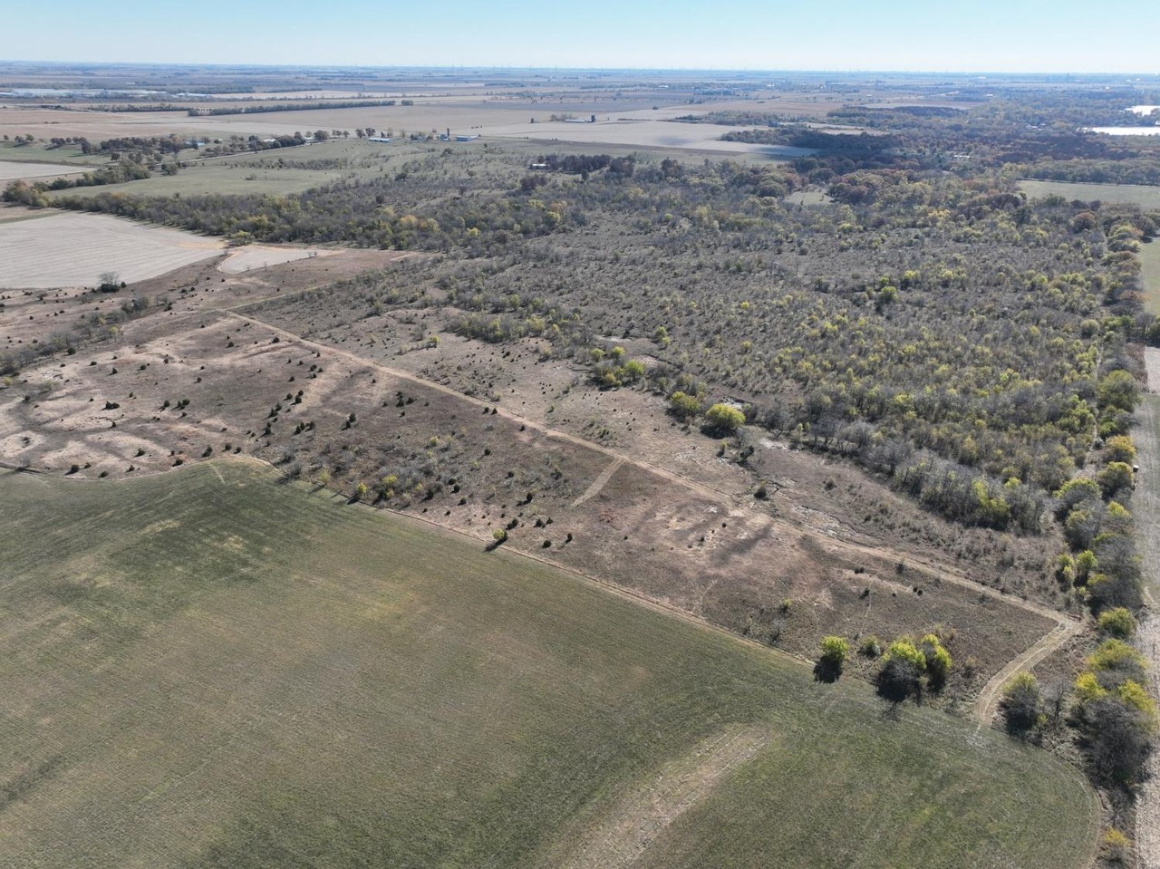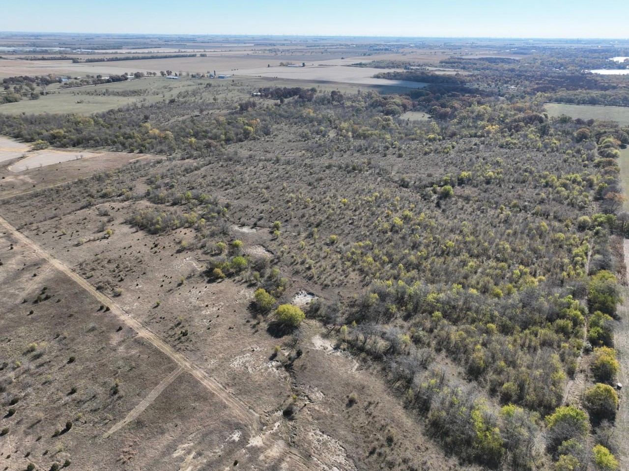 The remaining acreage is partially fenced consisting of overgrown pasture, thicket and brush.