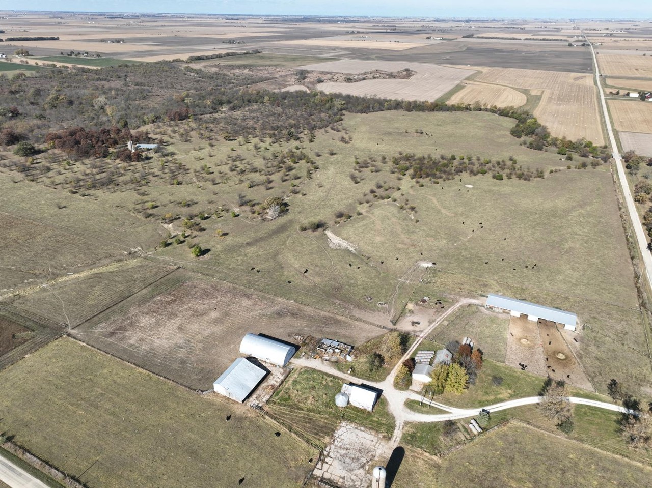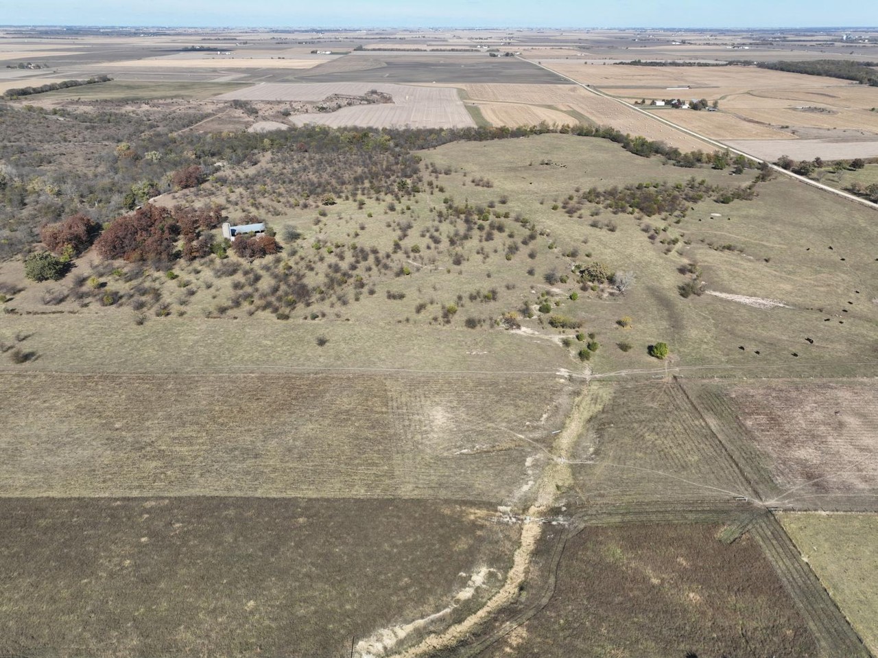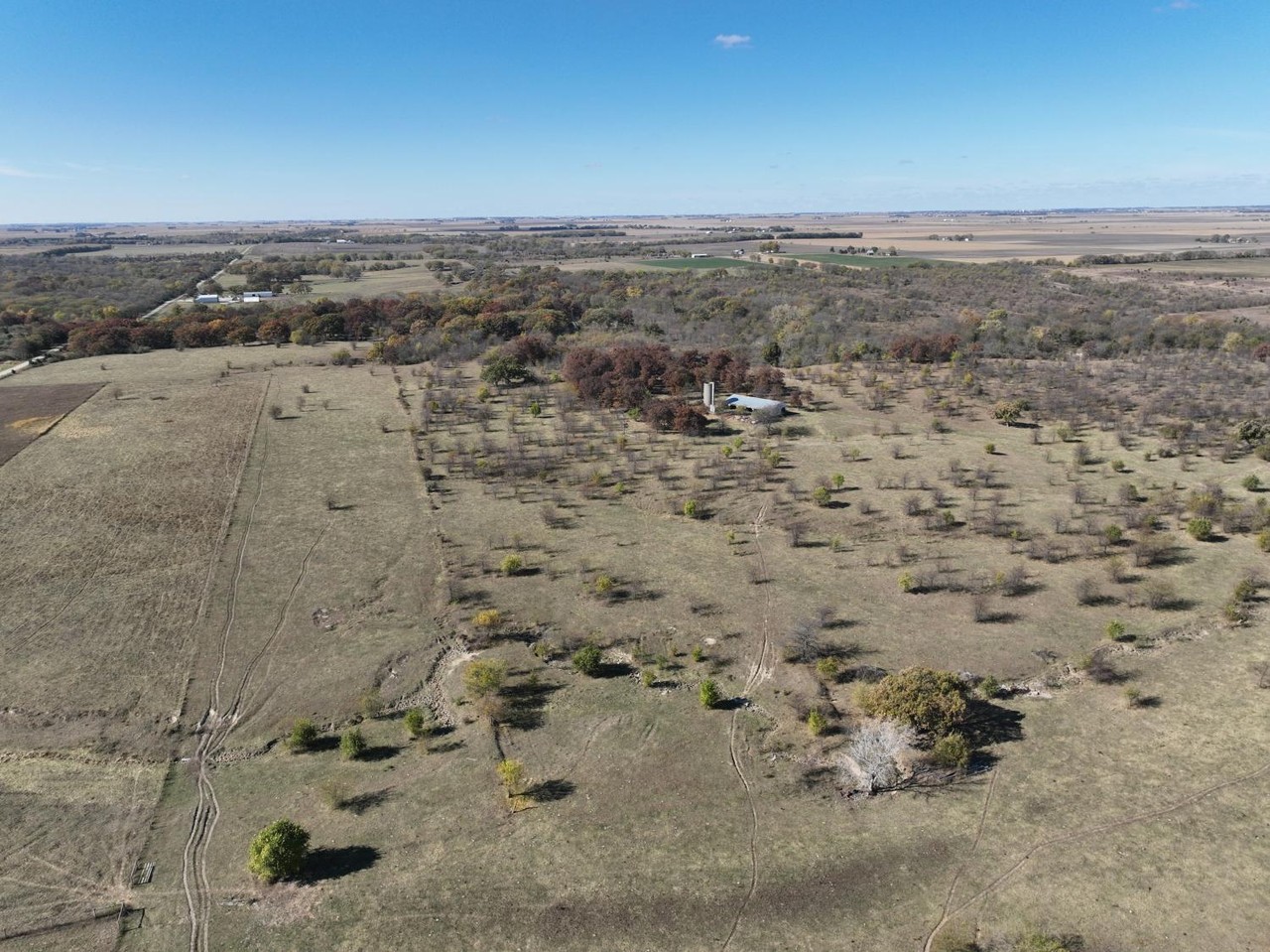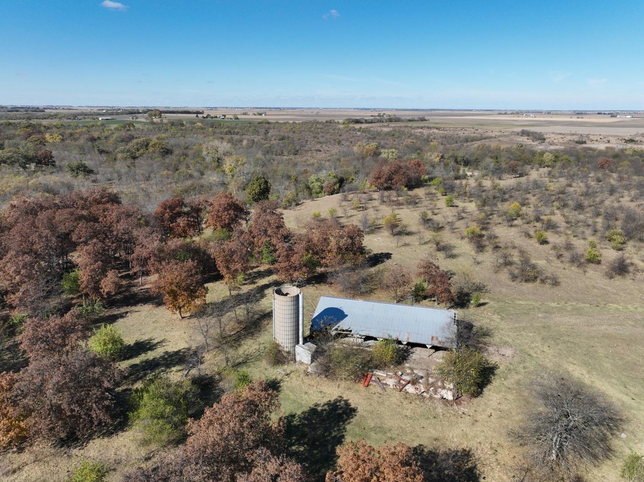 Older open sided cattle shed, and silo are located in the center of this tract.