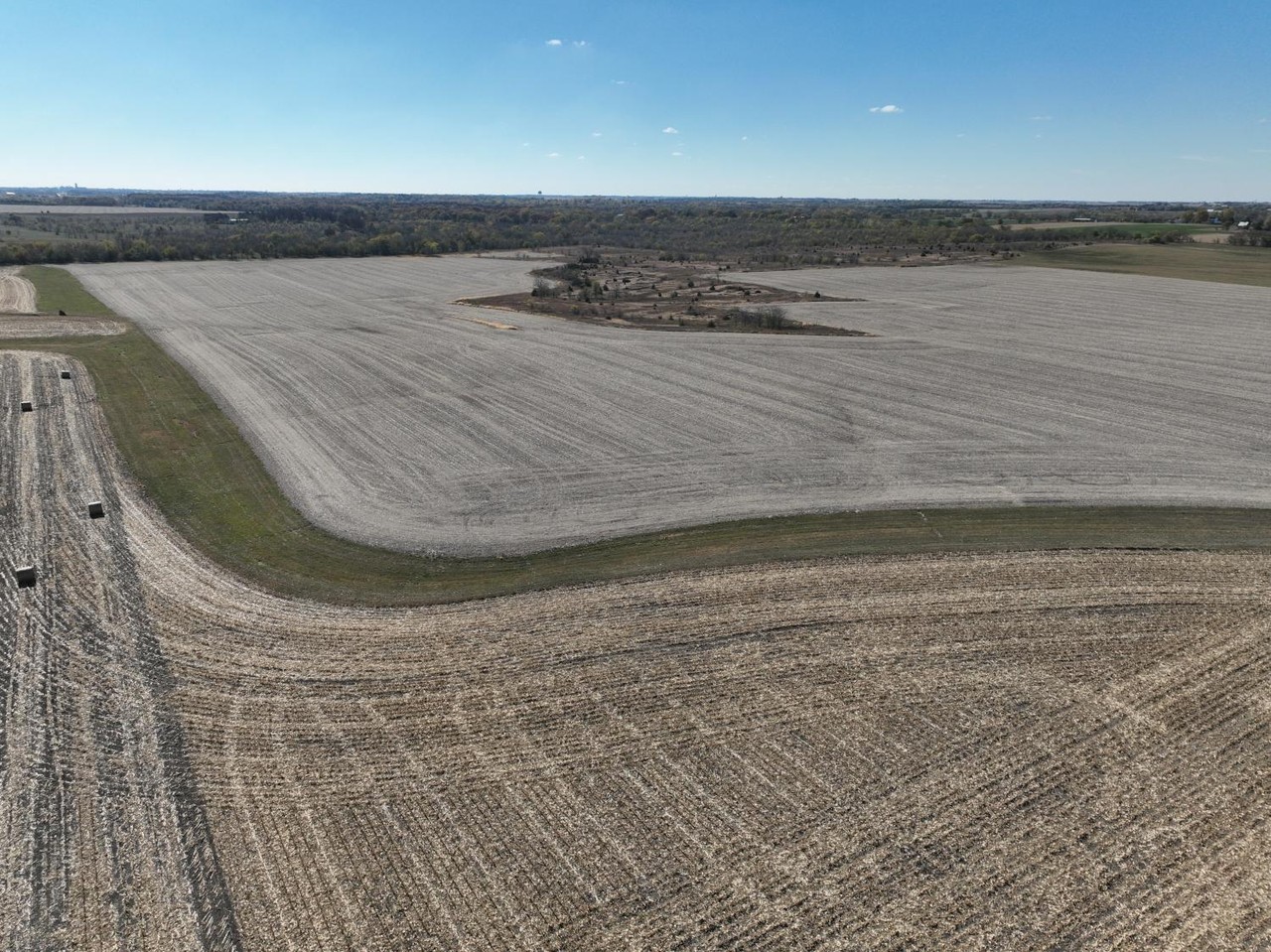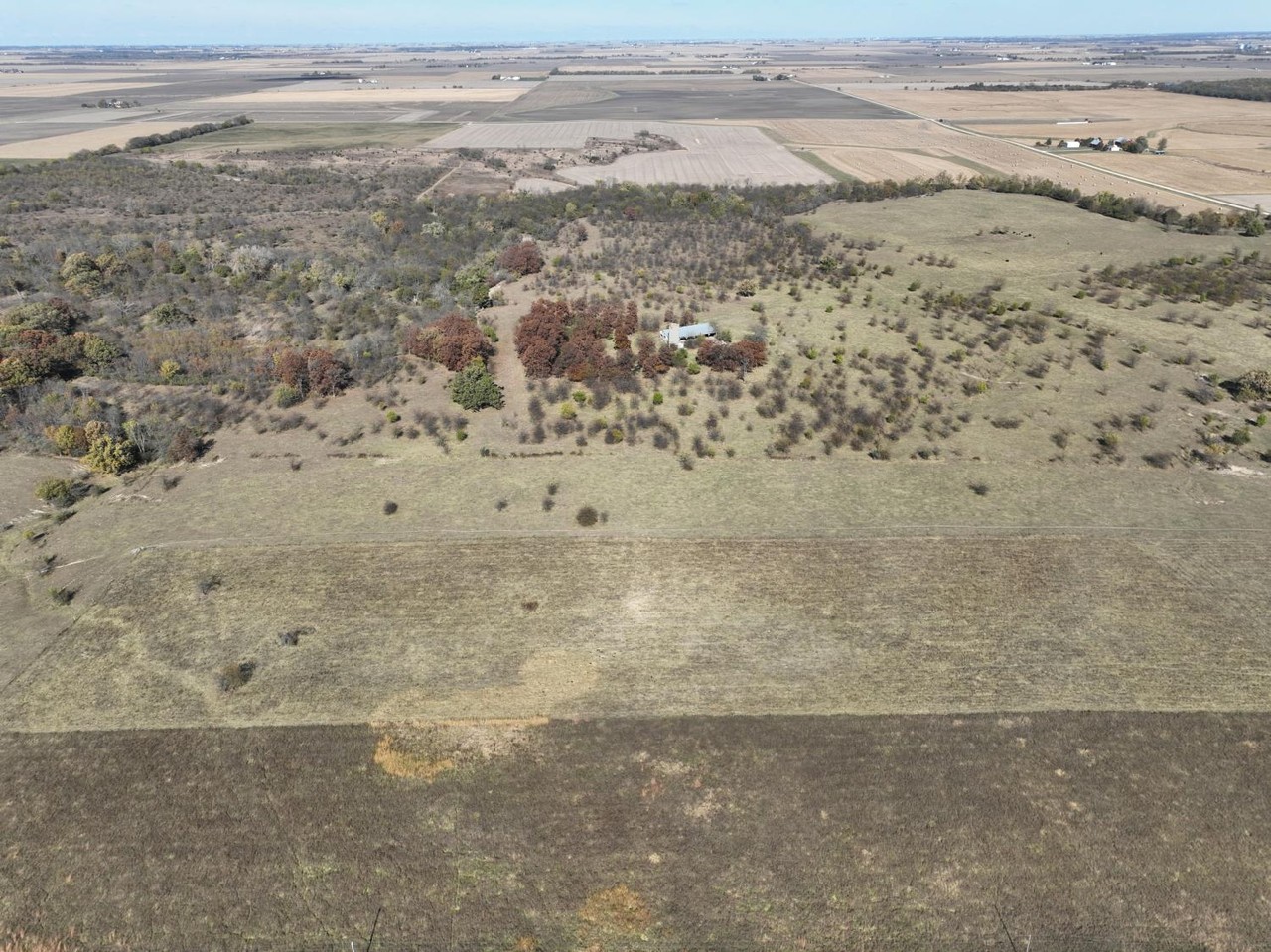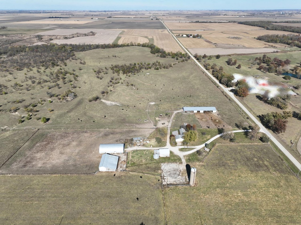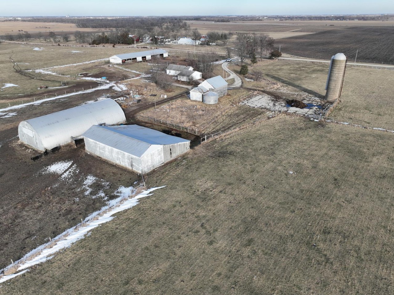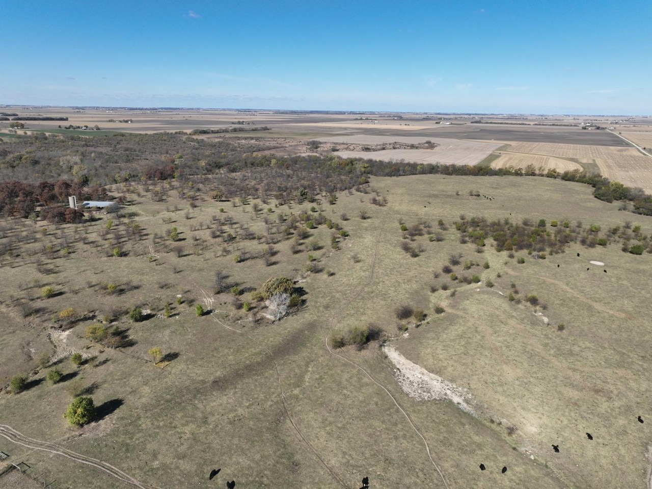 Older open sided cattle shed, and silo are located in the center of this tract.