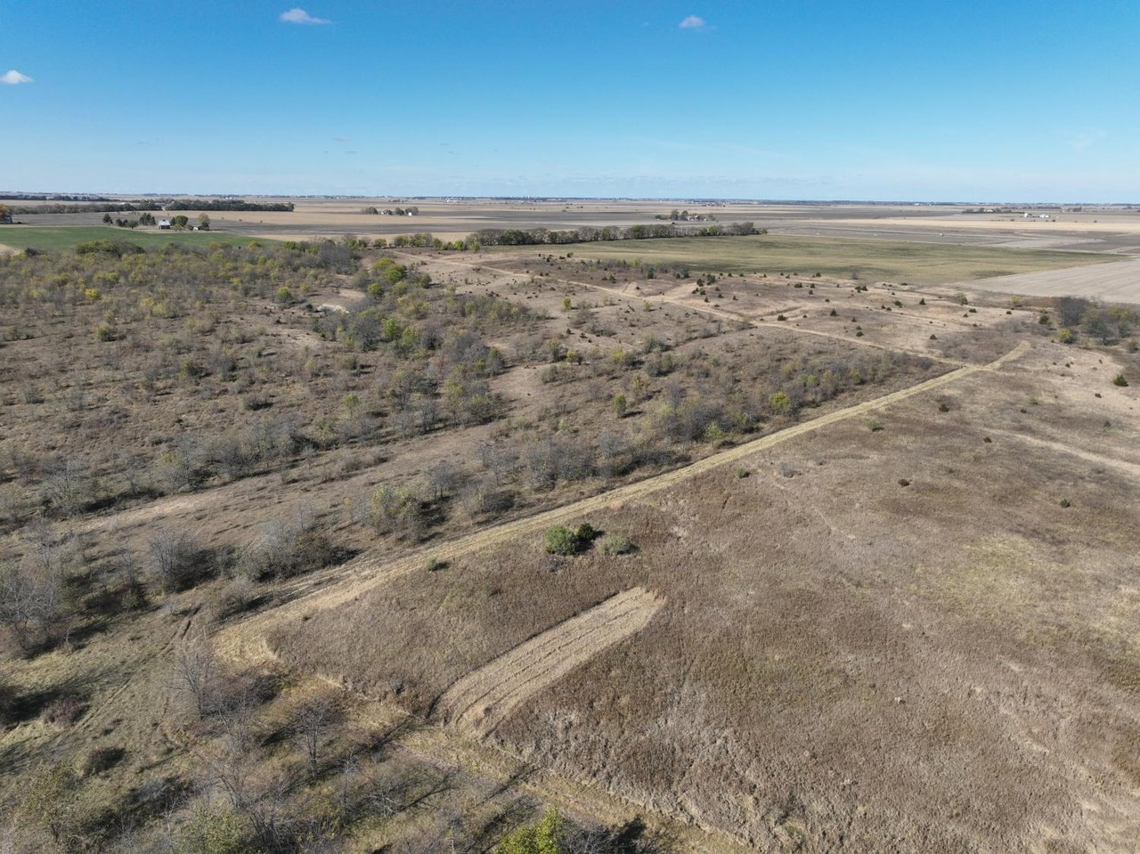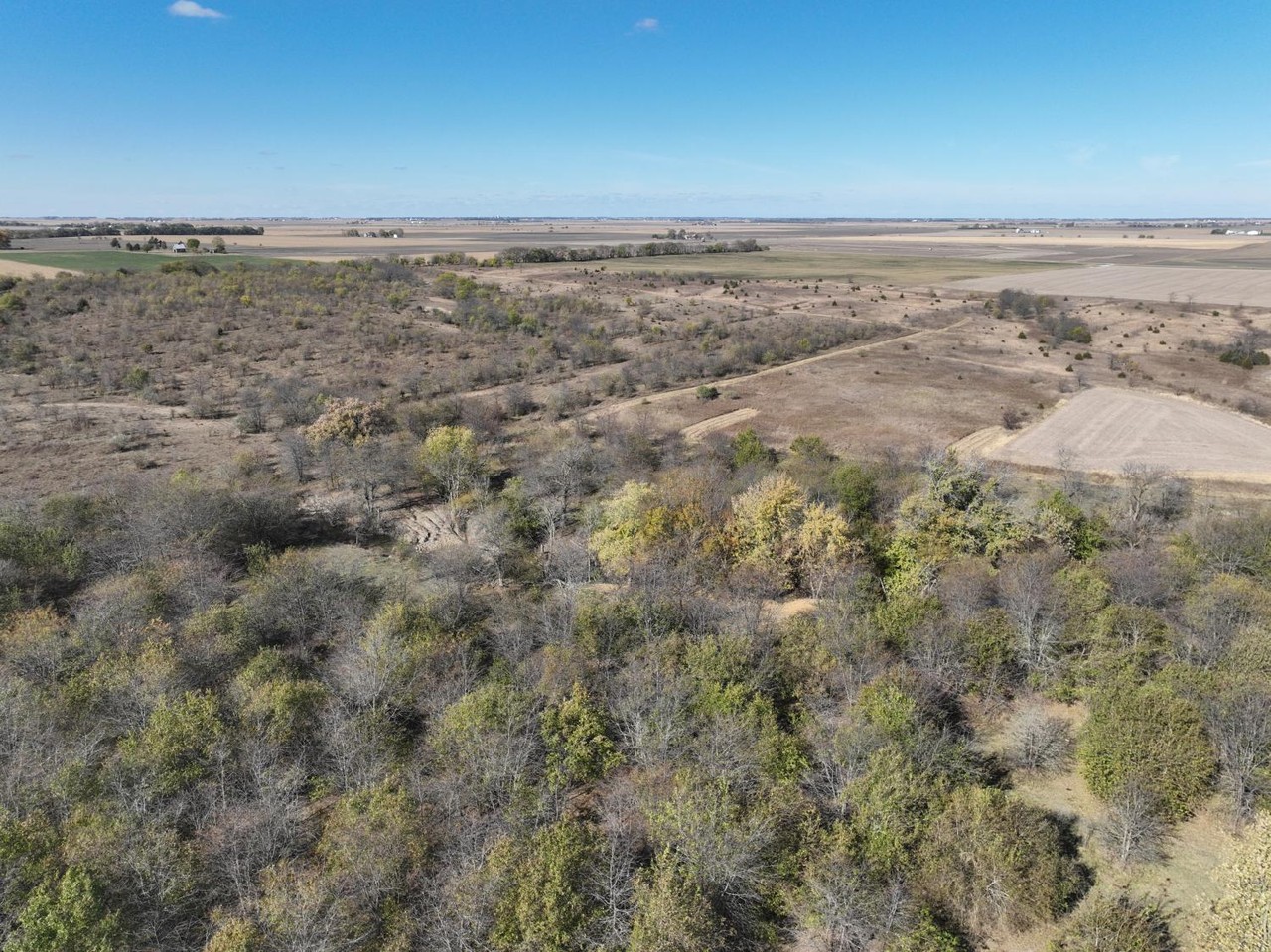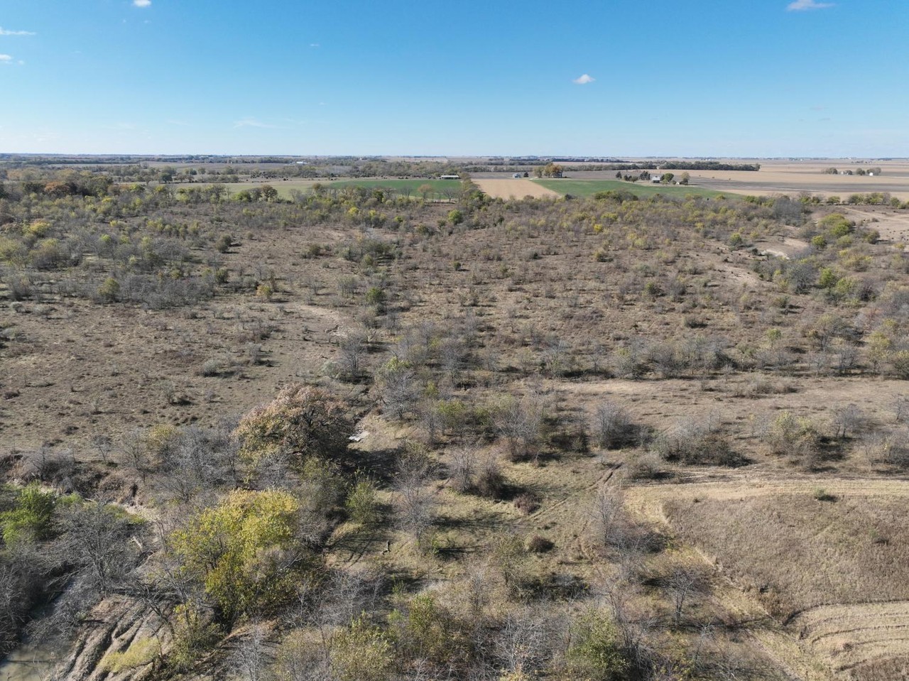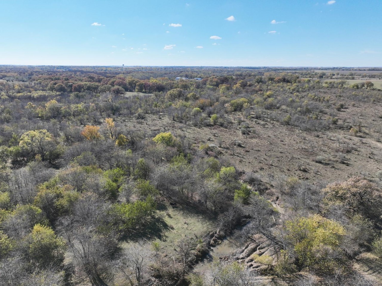 This tract has a variety of terrain changes consisting of grass pasture, mature timber, thickets and creek bottom.