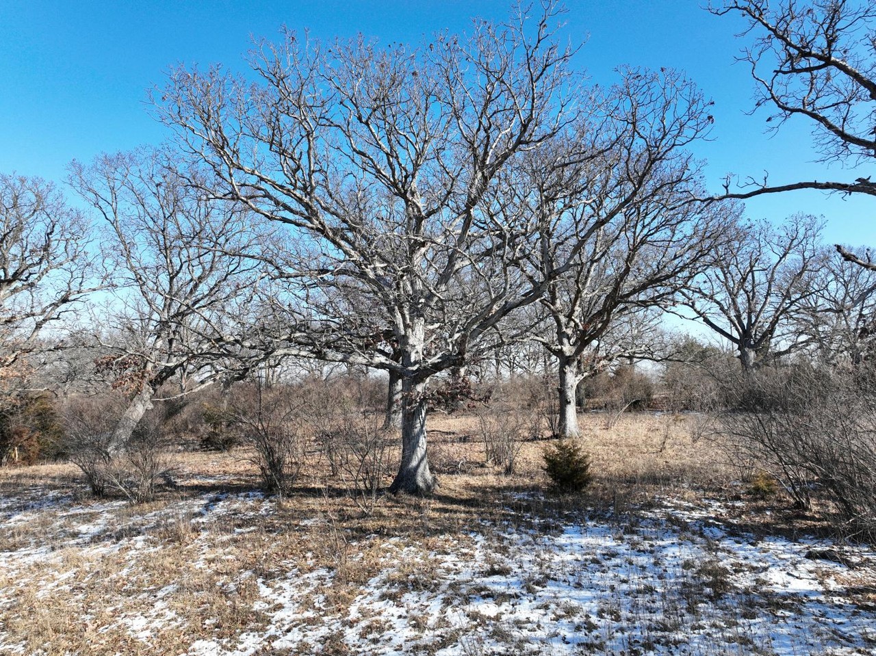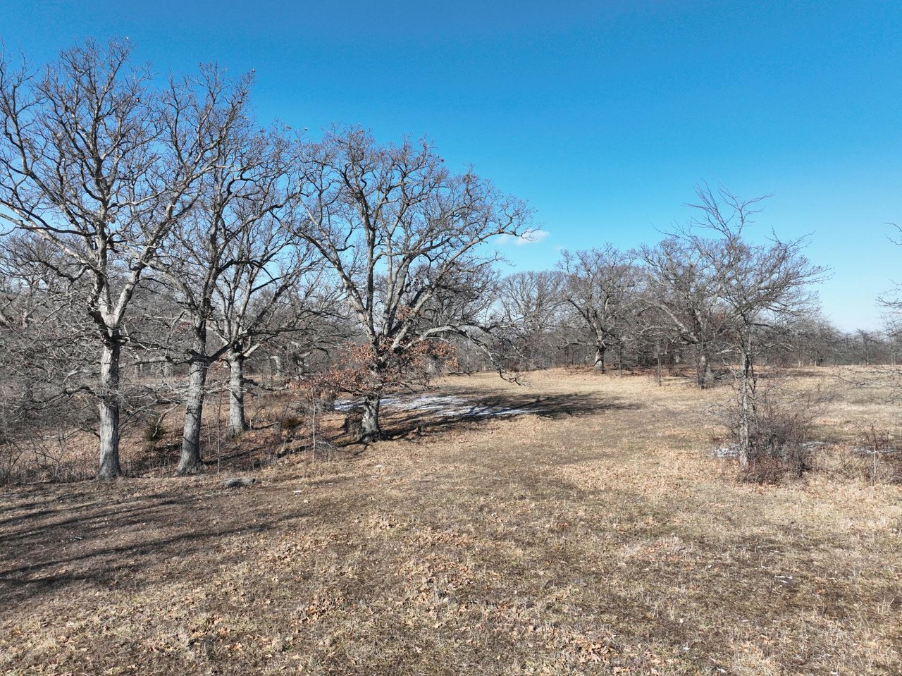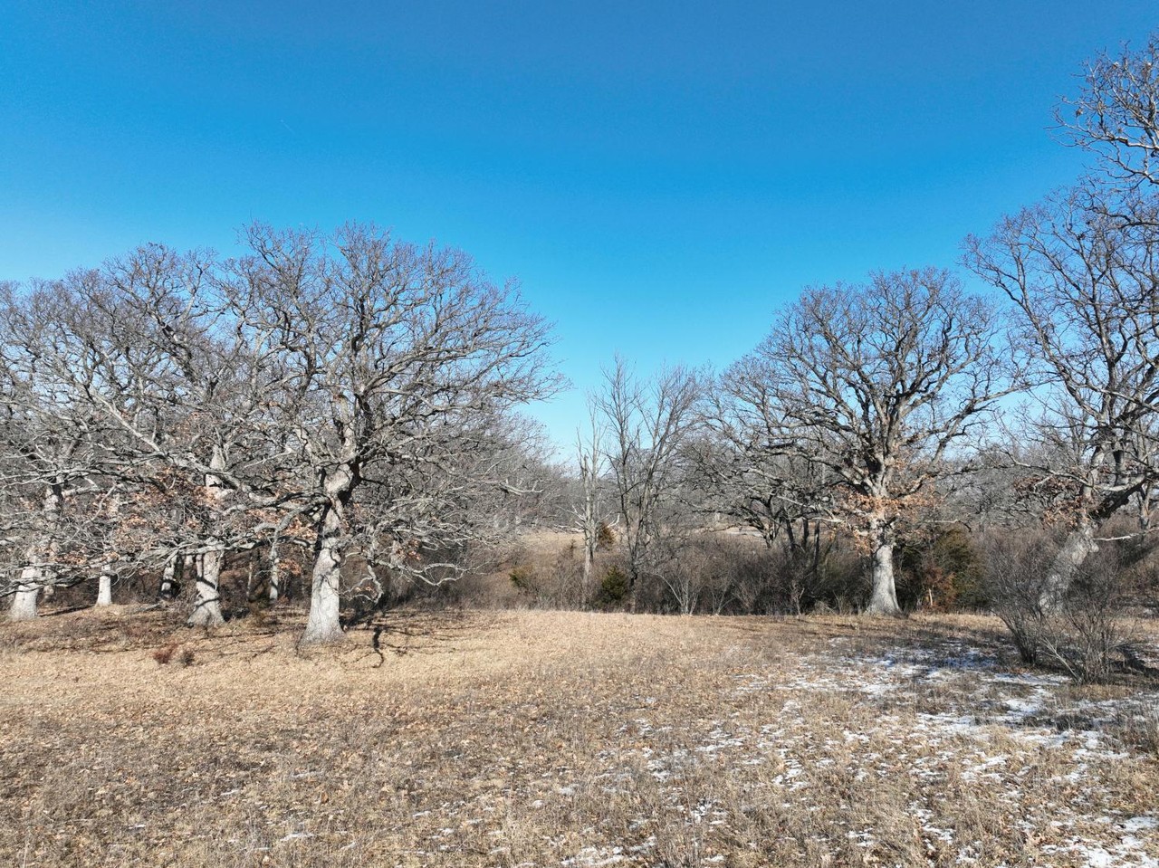 Abundance of mature white oak with a variety of terrain changes consisting of grass pasture, mature timber, thickets and creek bottom. This is a natural funnel for whitetails
