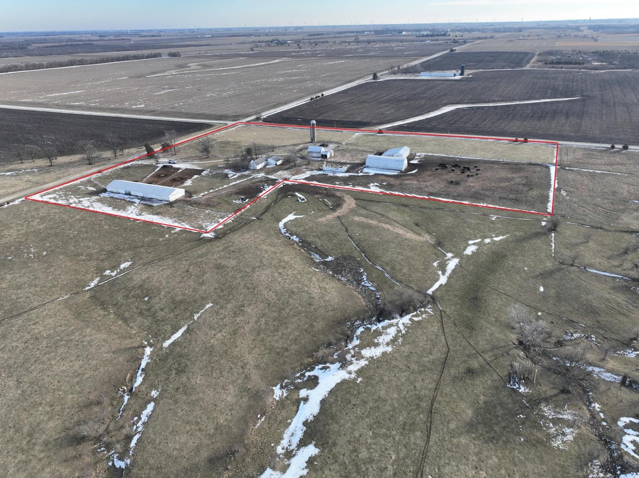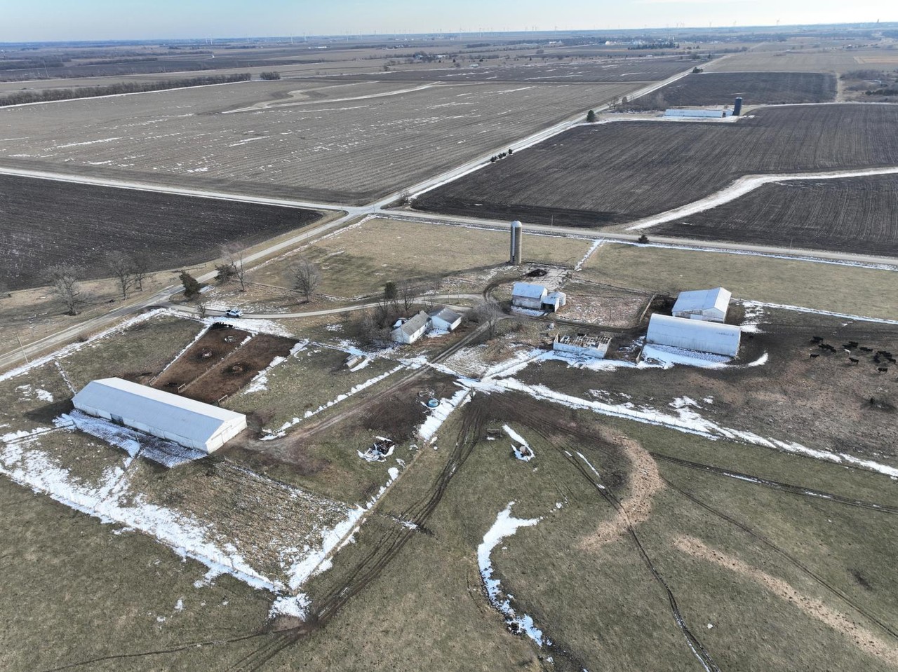 Cattle feed lot and pasture.