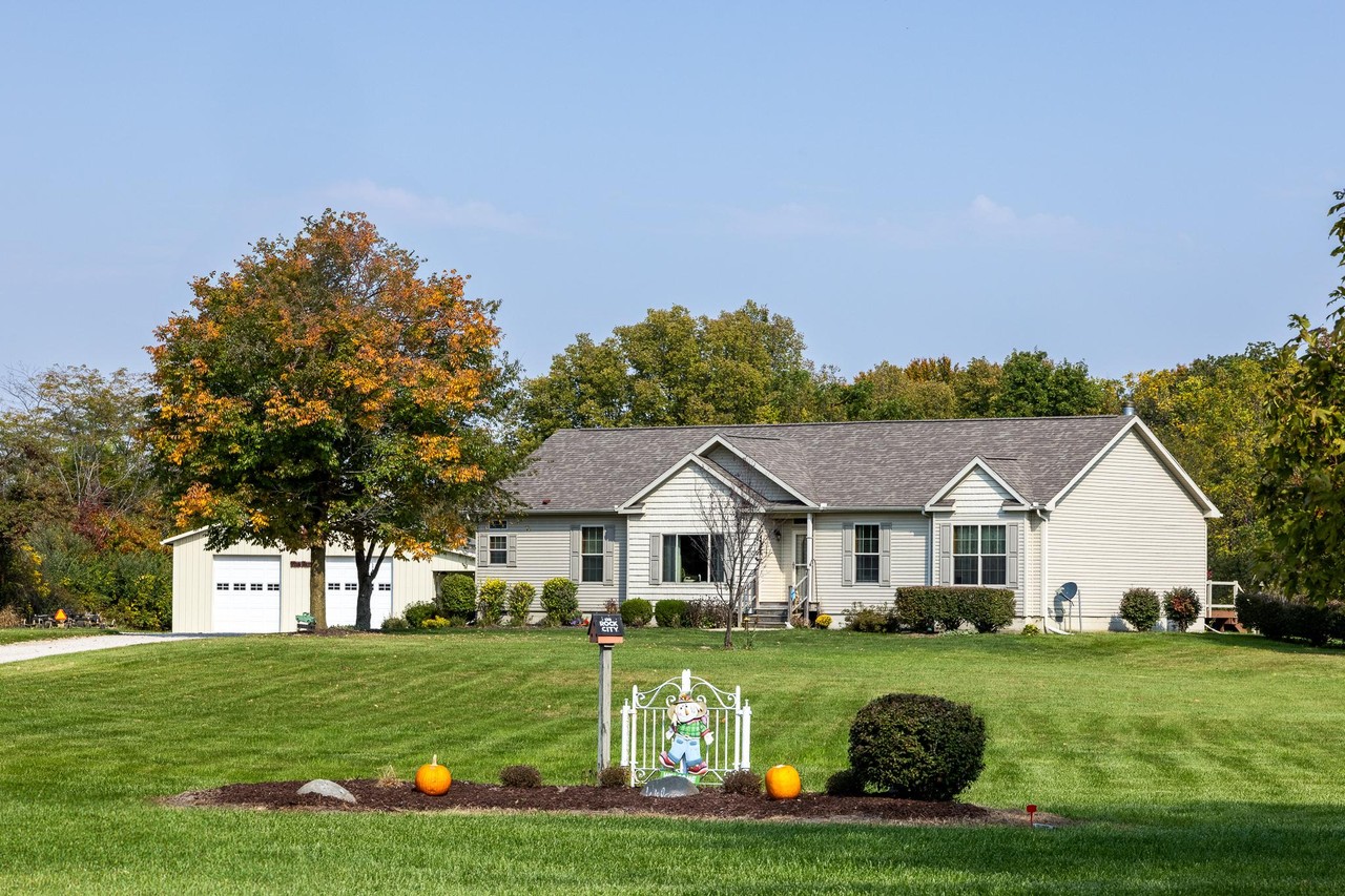This gorgeous home sits on 51.54 acres of land adjacent to Kickapoo State Park.