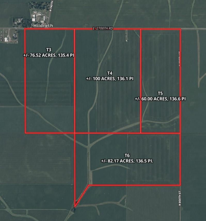 T5: +/- 60.00 acres in total, +/- 59.23 tillable acres, 136.6 PI.