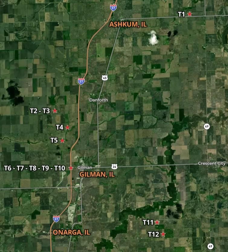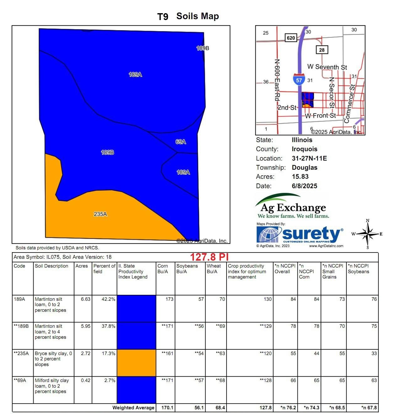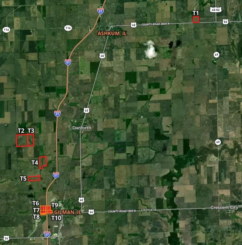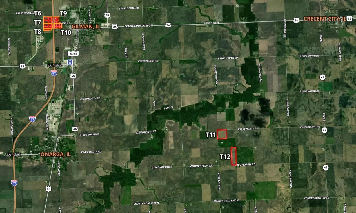 Addresss for driving directions: T2, T3: 523 County Rd 2100 N, Danforth, IL 60930. T4: 622 E 2000 North Rd, Danforth, IL, 60930 T5: 1960 N 600 East Rd, Gilman, IL, 60938 T6, T7, T8, T9, T10: 2nd St & 600 East Rd, Gilman, IL 60938. T11, T12: E 1500 North Rd & Co Hwy 42 Onarga, IL 60955 Contact Land Broker and Auctioneer, Travis Selby 217-304-1686