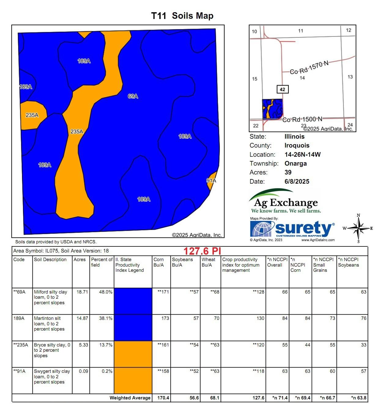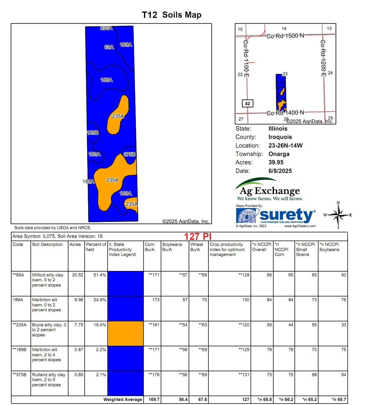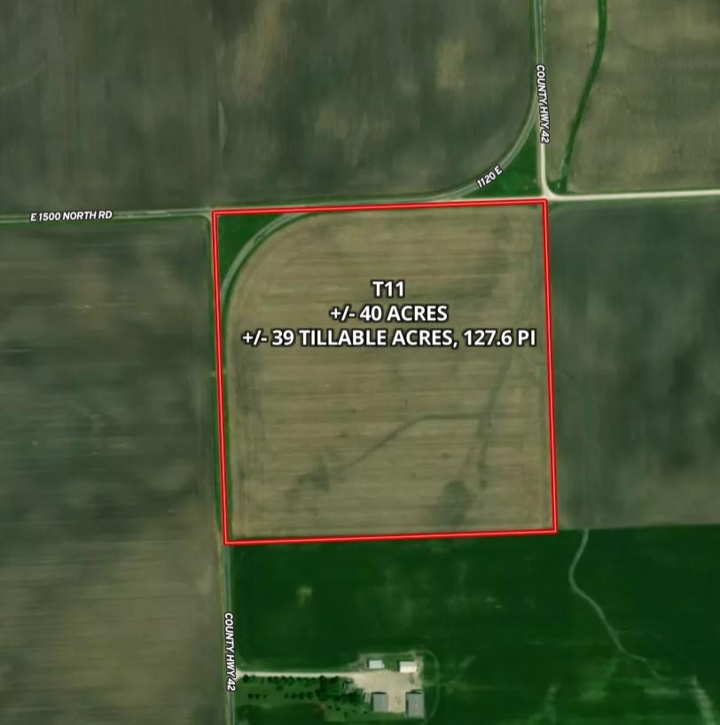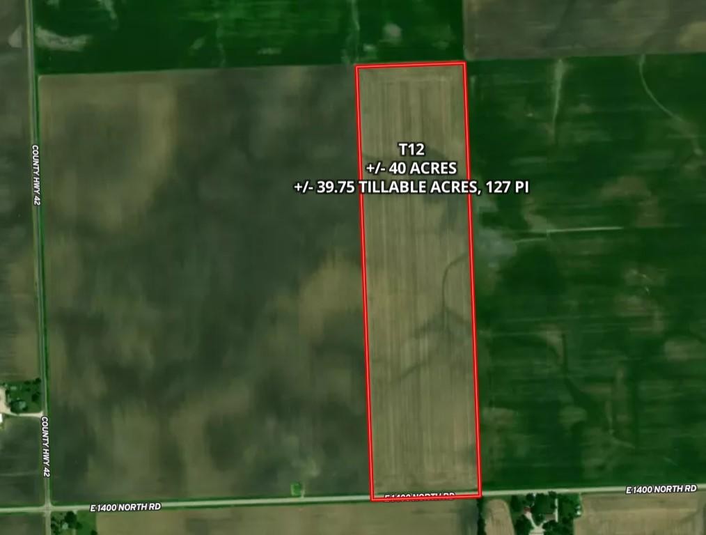 T12: +/- 40 acres, +/- 39.57 tillable acres, 127 PI.
