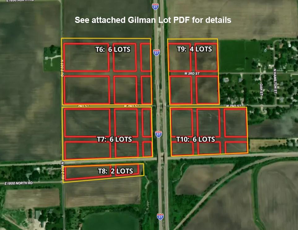 Lot #s: 5, 6, 7, 8, 9, and 10 of Scotts Addition of Outlots to Gilman, Illinois.