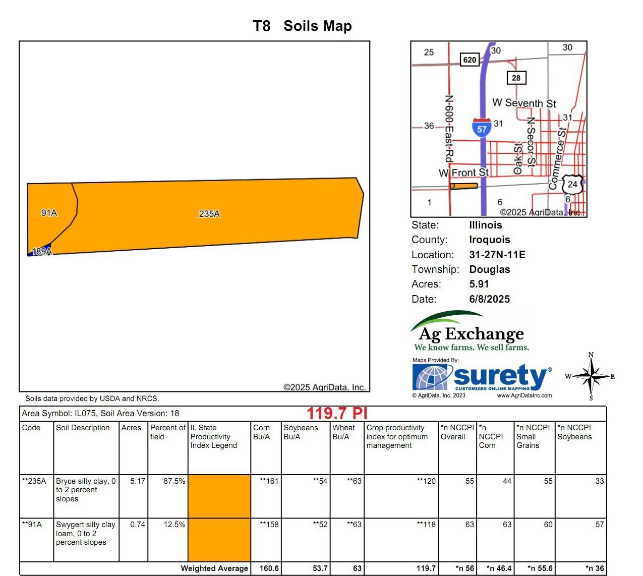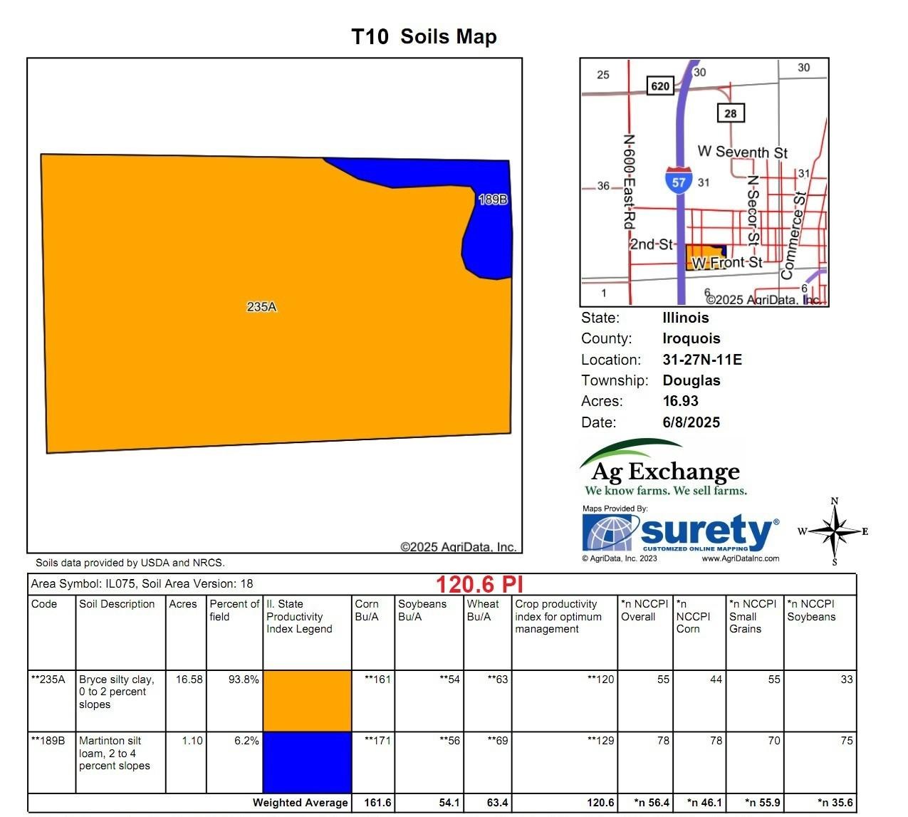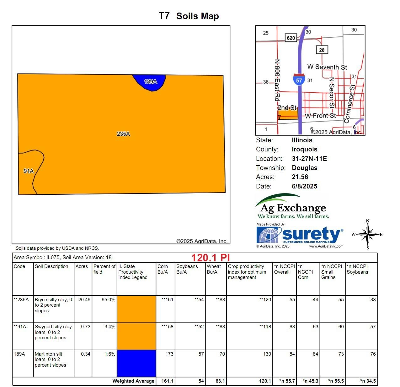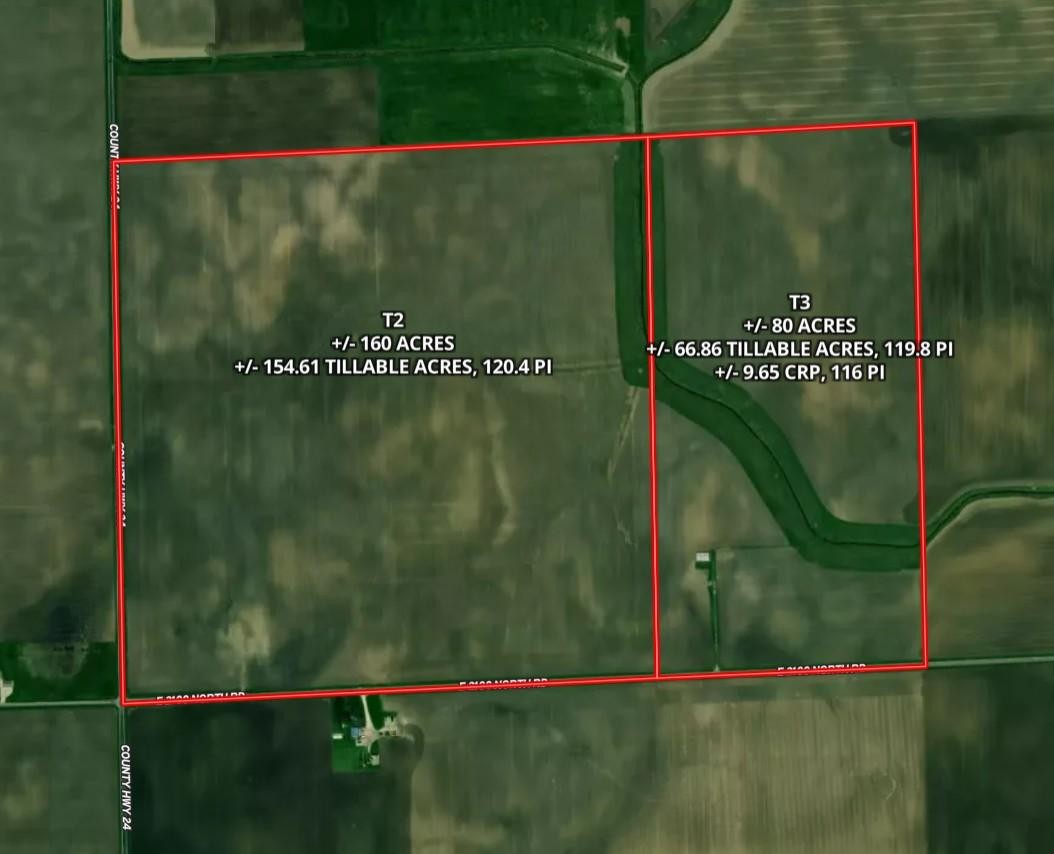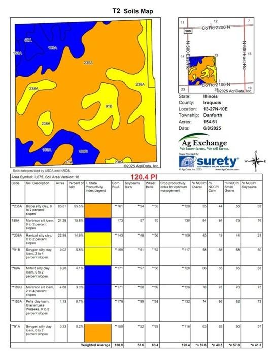 T2: +/- 160 acres, +/- 154.61 tillable acres, 120.4 PI