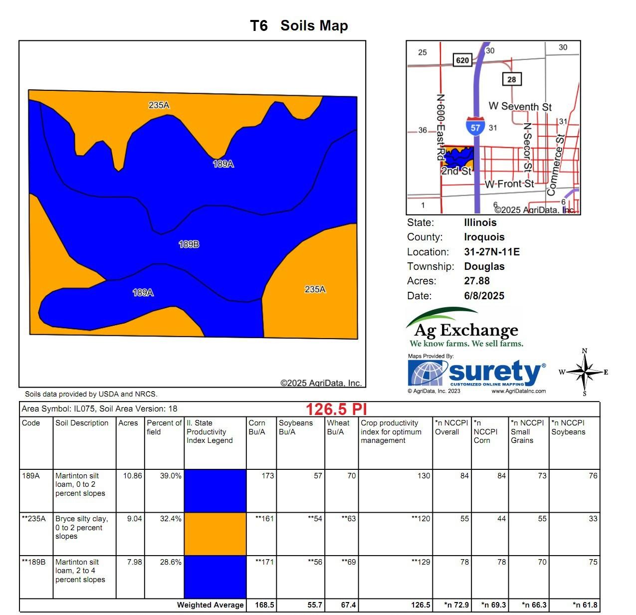Currently occupying and farming +/- 27.88 tillable acres, 126.5 PI.