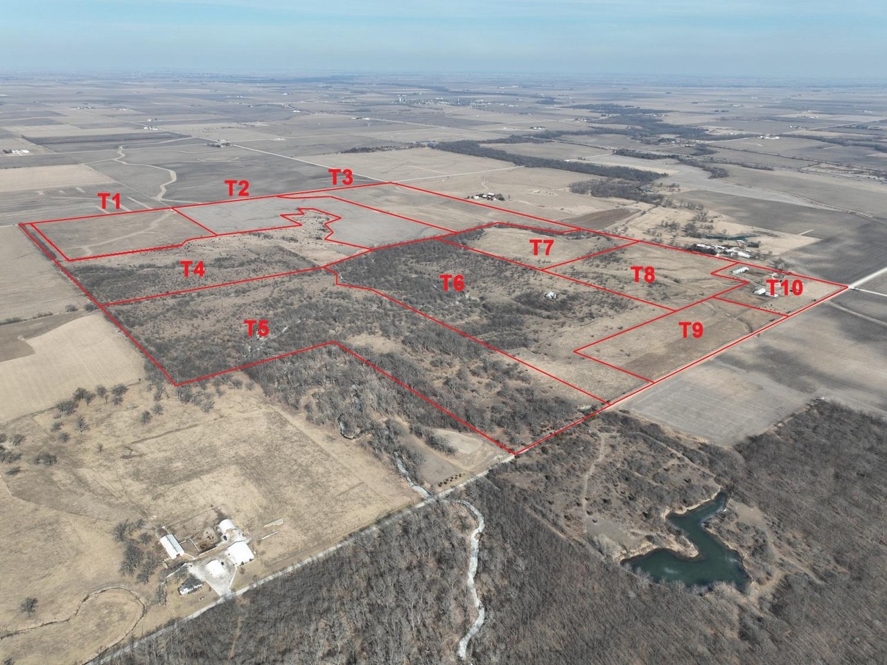 T5: +/- 65.50 acres in total, fenced along the south and west boundary. Spring Creek runs through the property.