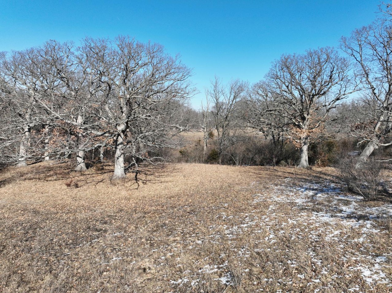 Abundance of mature white oak with a variety of terrain changes consisting of grass pasture, mature timber, thickets and creek bottom.